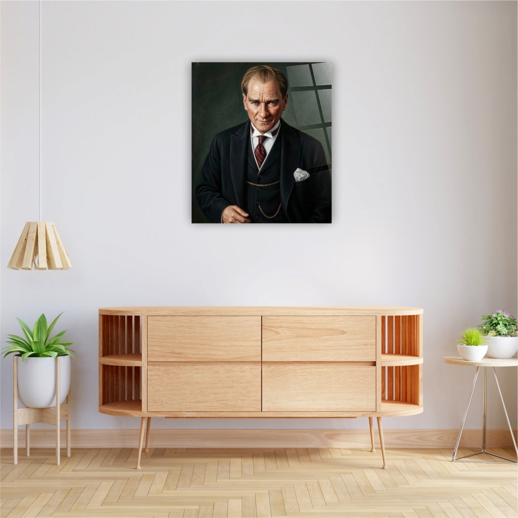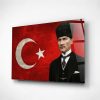 4 mm temperli cam üzerine UV baskılı Atatürk cam tablo. Şık ve modern duvar dekorasyonu.