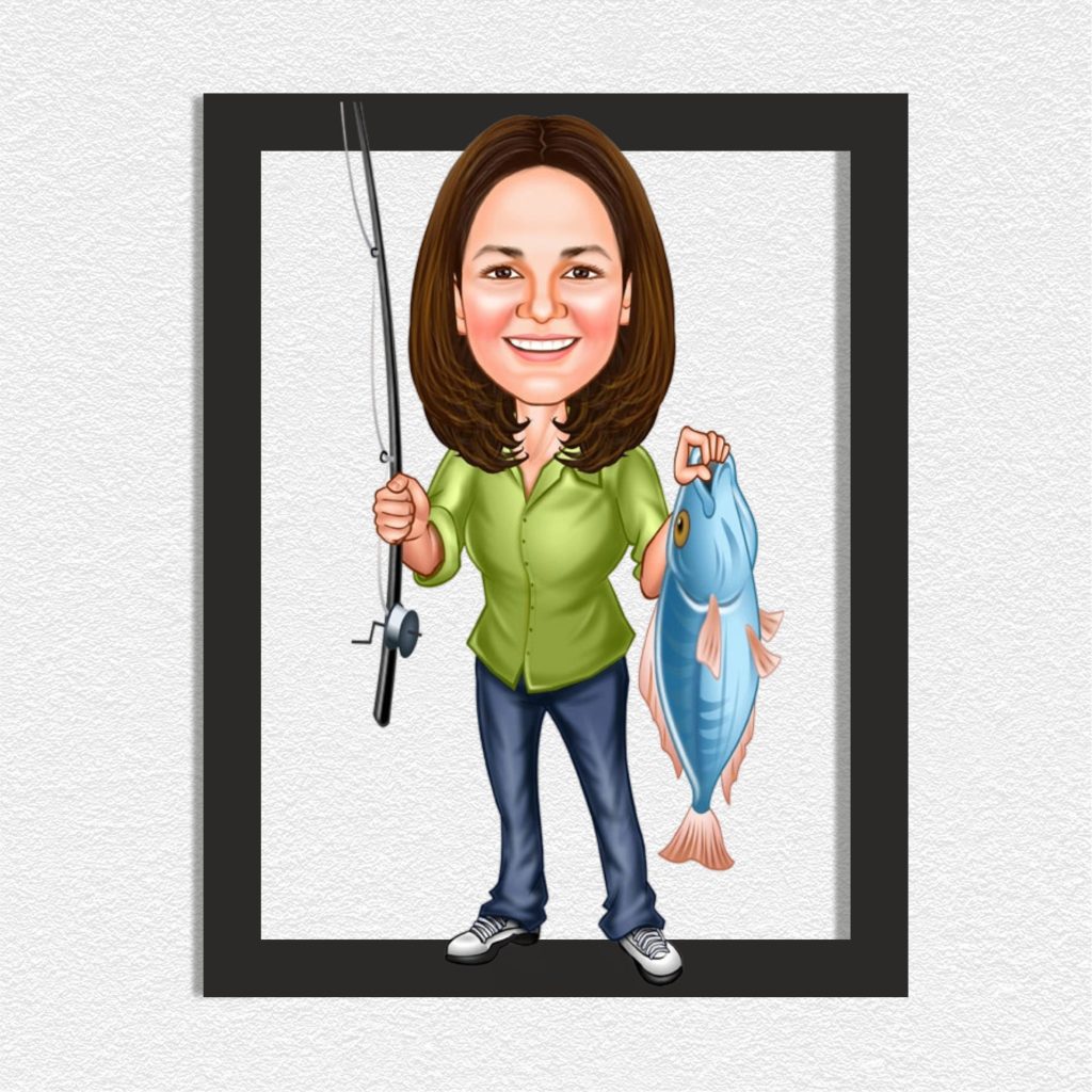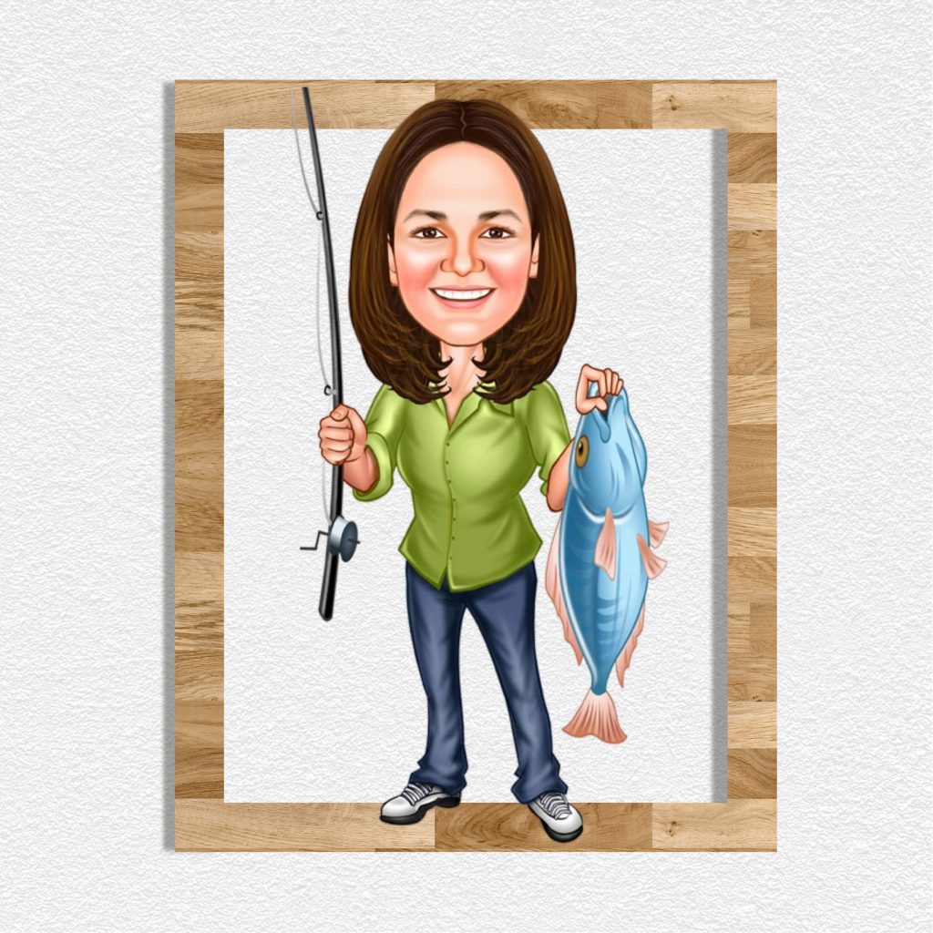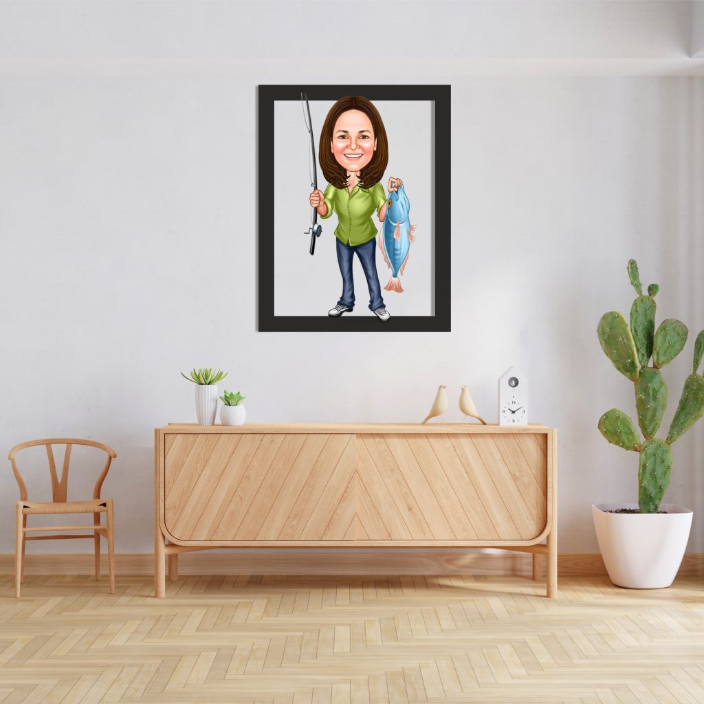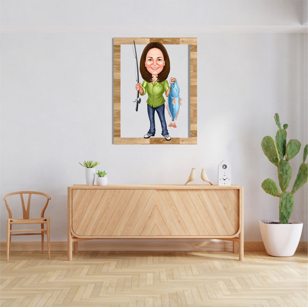 Balık Tutan Kız Karikatürlü Ahşap Tablo 1