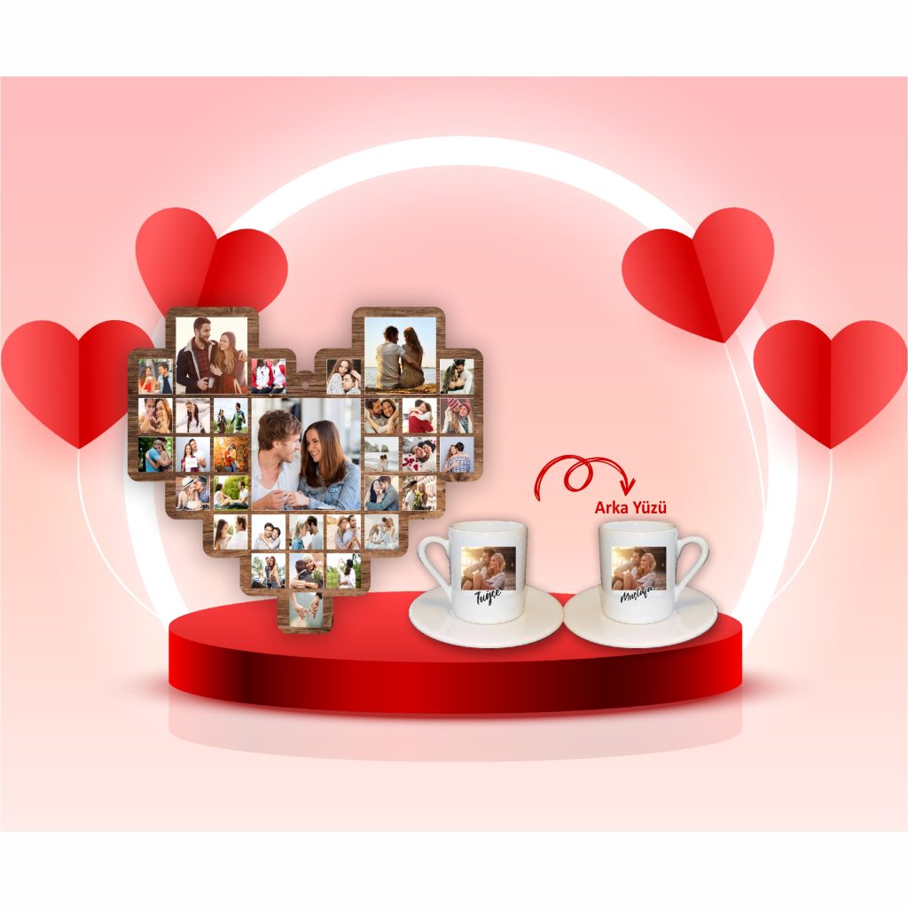 Kişiye Özel Kalpli 32 Fotoğraflı Ahşap Tablo;