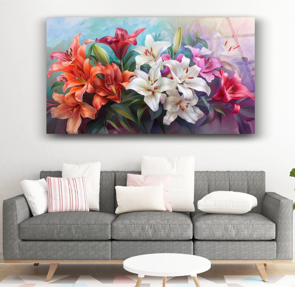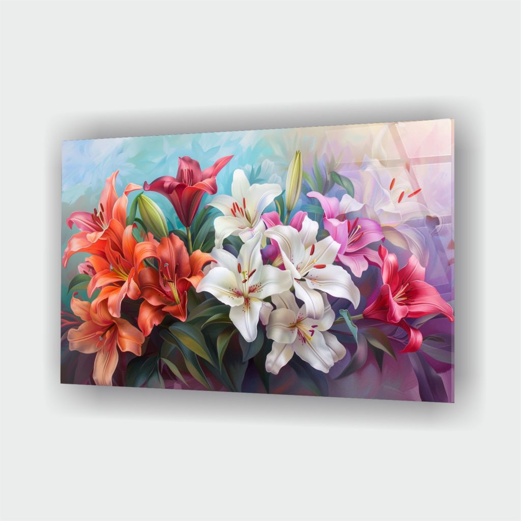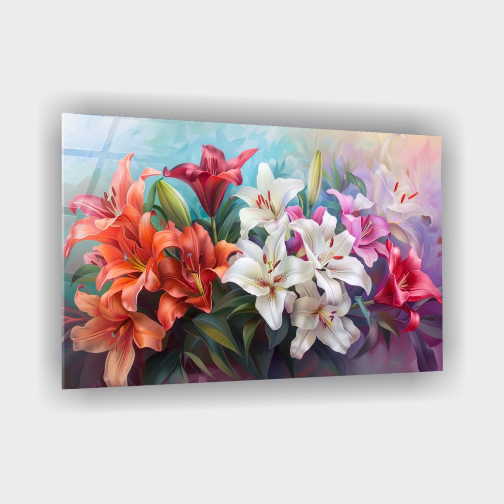Renkli Zambaklar Cam Tablo 2